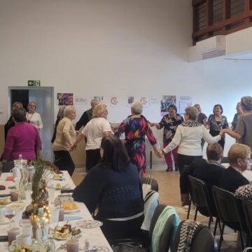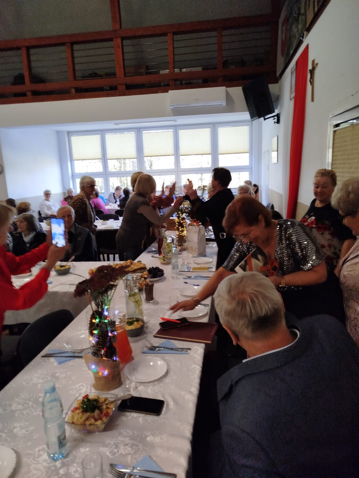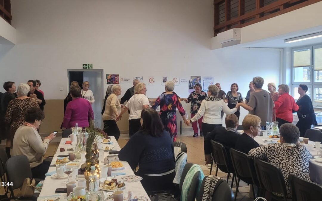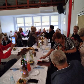 Pani prezes Rejonu H. Krajewska wręczyła upominki i podziękowania Pani prezes i Pani wiceprezes Koła za wspaniałą współpracę. Wszystkim złożyła serdeczne życzenia z okazji święta i stwierdziła, iż 14 listopada nie jest świętem cukrzycy, ale jest okazją do refleksji nad życiem z cukrzycą. Podziękowała koleżankom ze Stowarzyszenia za pełnione funkcje i chęć uczestnictwa w spotkaniach edukacyjnych oraz za chęć pomocy drugiemu człowiekowi Następnie przekazano druki do sprawozdawczości za 2025 rok i zaproszono zebranych do degustacji zdrowej żywności i przepysznego zdrowego obiadu. Przy dźwiękach instrumentów muzycznych wszyscy bawili się wesoło, tańczyli, śpiewali i wykonywali zajęcia relaksacyjne.